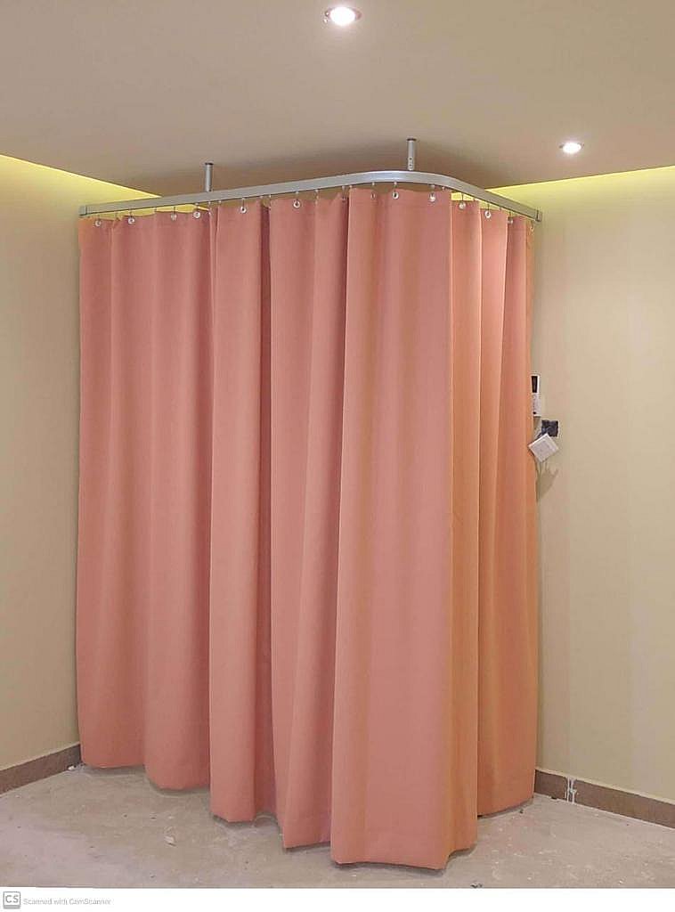 صممت هذه الستائر بهذا الشكل لفصل أسرة المرضي عن بعضها البعض لتضفي المزيد من الخصوصية للمرضي وهي عبارة عن سكة علوية مصنوعة من الألومنيوم المتين فضي اللون سويسرية الصنع (ضمان 5 سنوات) وتحتوي علي مجري تسير به عجلات مصنوعه من الـ PVC المقوي يعلق به القماش ليعطيه مرونه في الحركه حيث أن القماش معالج طبقا للمواصفات الفنيه لوزارة الصحة ويوجد منه نوعان.